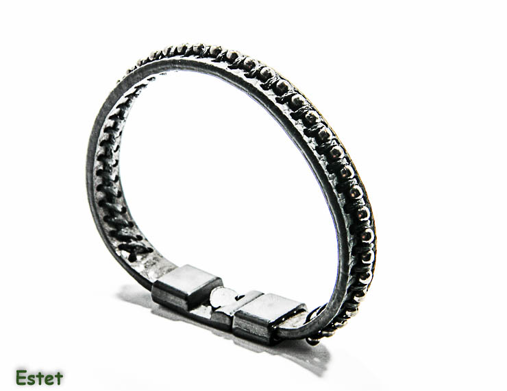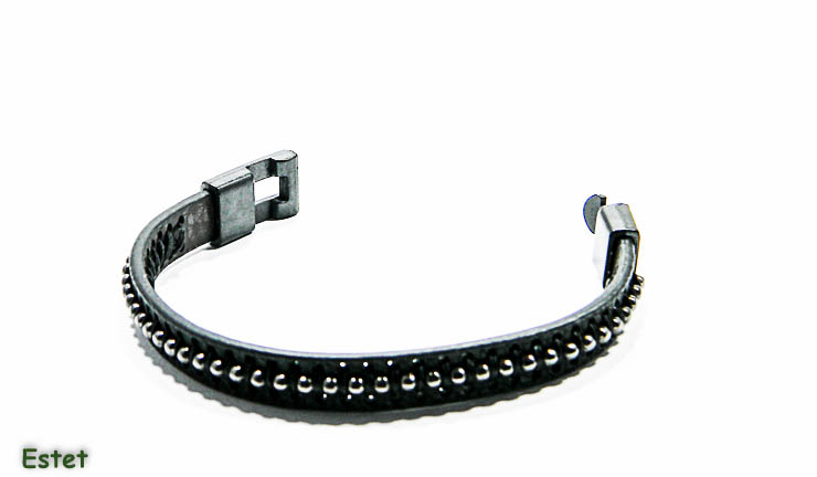 Bratara barbati din piele si otel inoxidabil de culoare neagra – BPX016.
