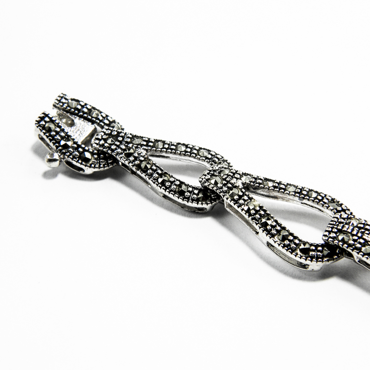 Bijuterii din argint cu marcasite – Bratara din argint 925, cu elemente in forma de lacrima, lucrata in stil vintage, cu influente orientale.
