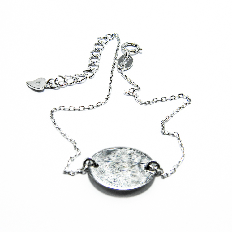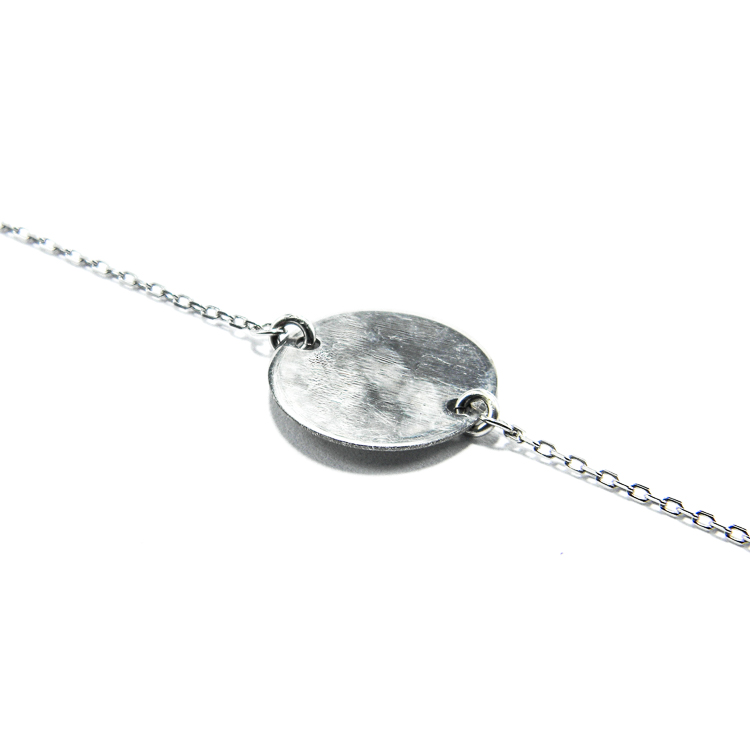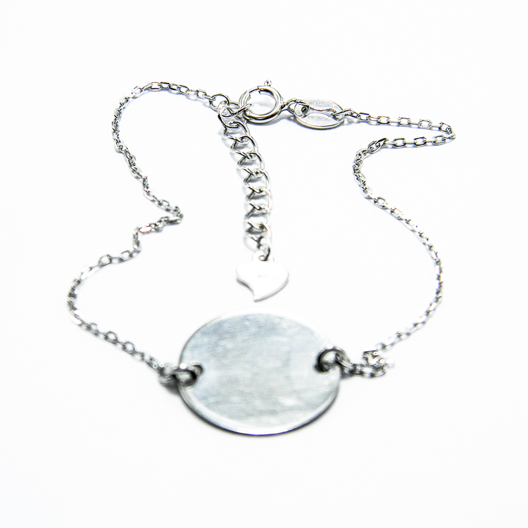 Bratara din argint 925, cu lantisoare fine si placa rotunda pentru gravat.