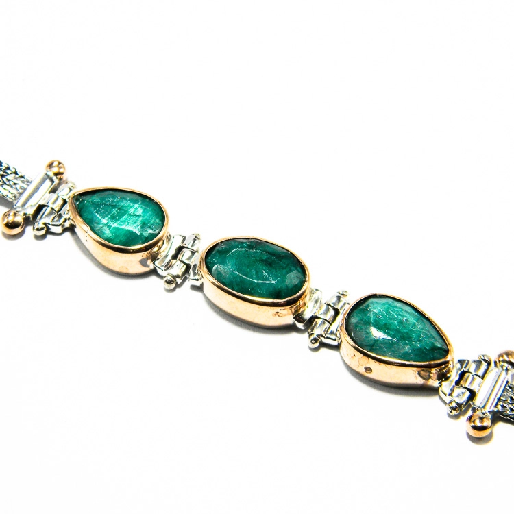 Brățară din argint cu smarald de sinteză, stil vintage bizantin – Porțile Orientului aproare de tine