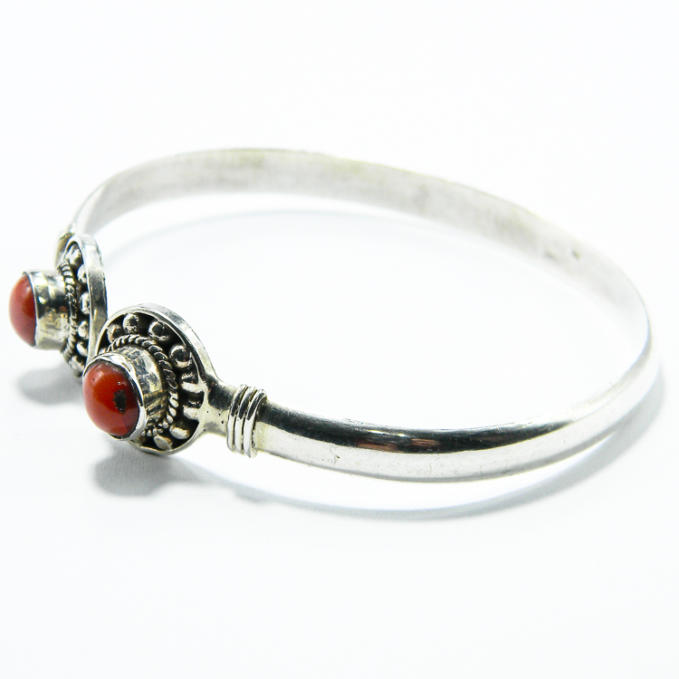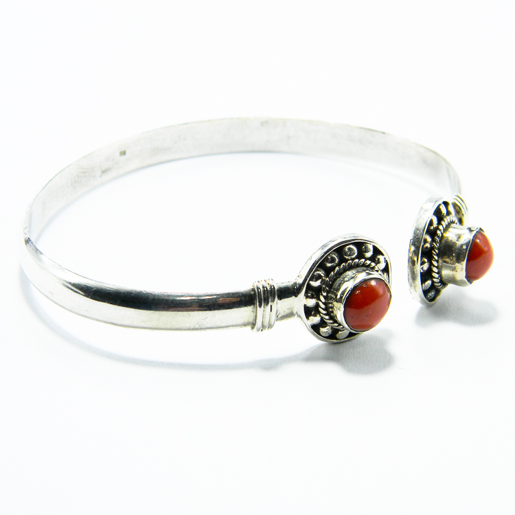 Bratari argint unicat – Bratara fixa din argint 925 patinat, decorata cu coral rosu natural – model vintage.