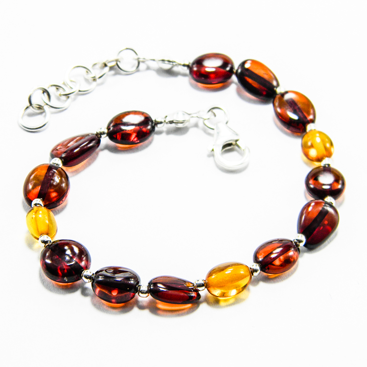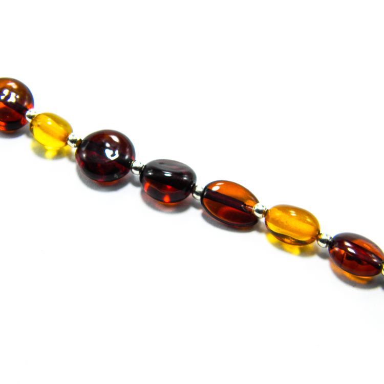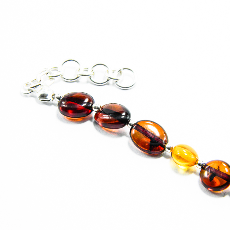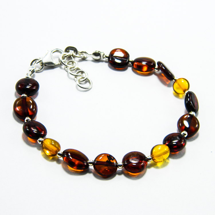Bijuterii argint cu chihlimbar – Bratara unicat handmade, realizata din rondele de chihlimbar natutal, de culoare bruna si galbena, si compunente din argint 925 (bile mici, de 2 mm.,furnituri si inchizatori).