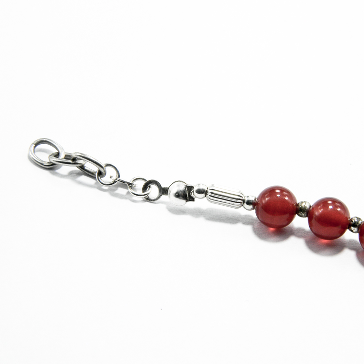 Bijuterii handmade in stil vintage – Bratara unicat din componente de argint 925 antichizat (inchizatori, furnituri si bile de 2 mm.) si pietre de carneol in caboson.