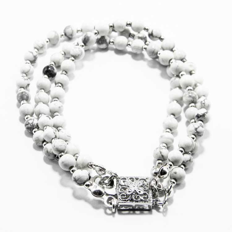 Bratara pe 3 randuri din argint cu onix alb – Unicat – Handmade – B125HM30GX