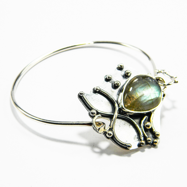 Bijuterii argint unicat – Bratara semideschisa din argint 925, decorata cu piatra de labradorit.