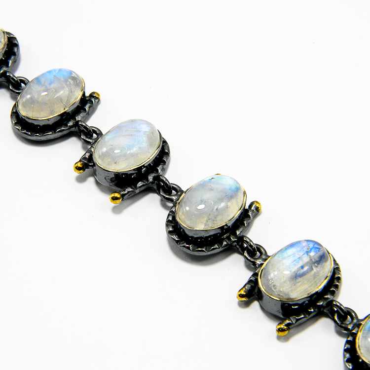 Bratara unicat din argint 925 antichizat, decorata cu pietre mari de opal, lucrate in caboson – model vintage statement.