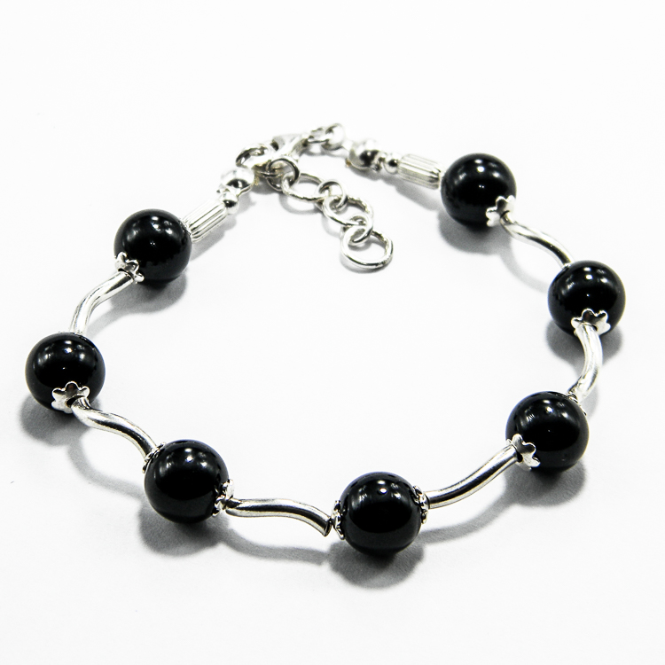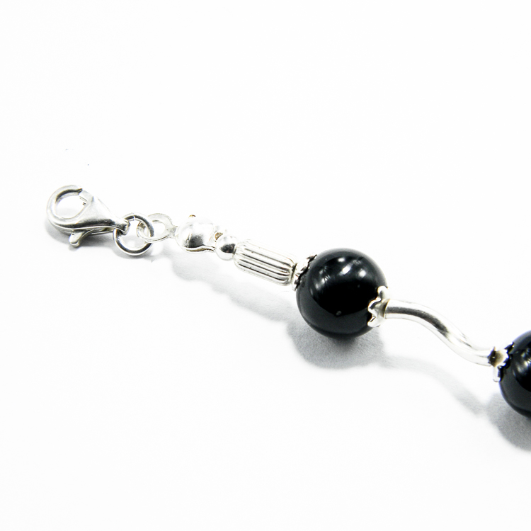 Bratara handmade realizata din pietre de onix negru in caboson si componente din argint 925 (jije ondulate, furnituri si inchizatoare).