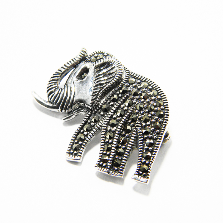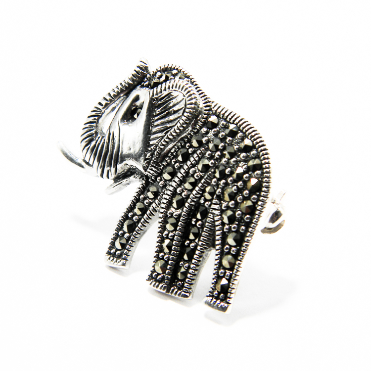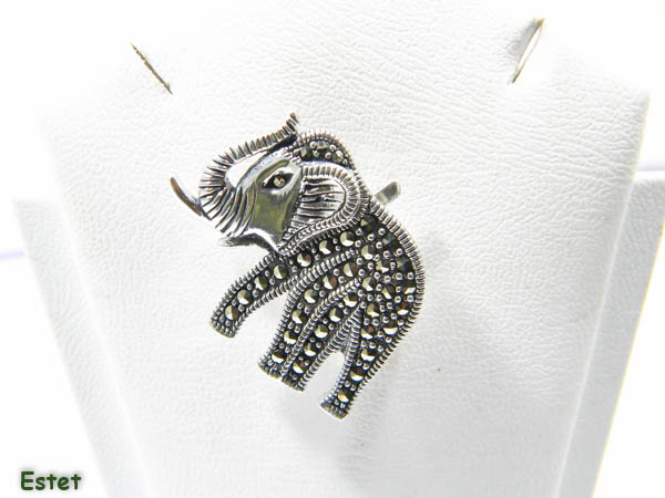 Brosa din argint 925 in forma de elefant, decorata cu marcasite.