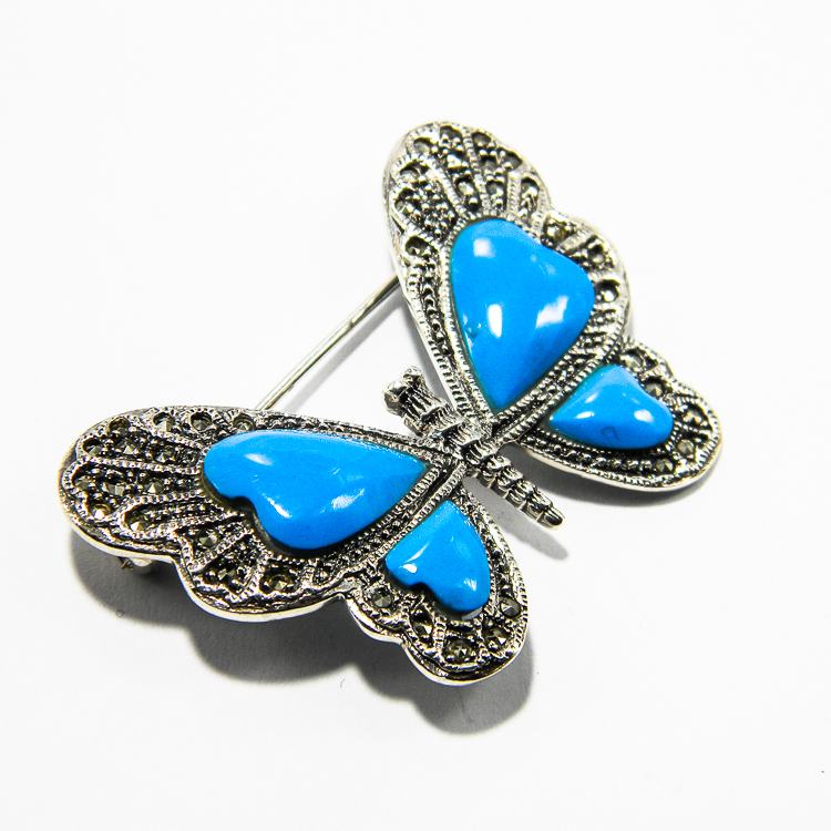 Brosa Fluture din argint cu marcasite si email albastru – BR185A7F
