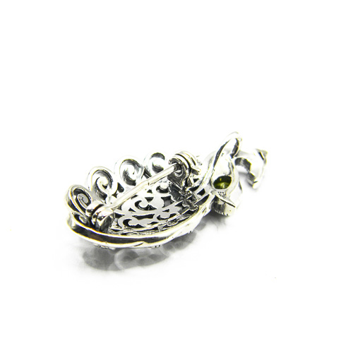 Brosa unicat vintage din argint 925, in forma de paun, cu dubla functie – poate fi folosita si ca pandantiv.