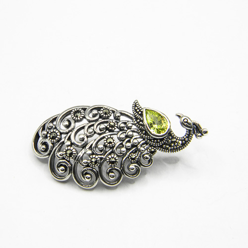 Brosa-pandantiv Paun din argint cu marcasite si topaz galben – Unicat – BR273Y16G-1