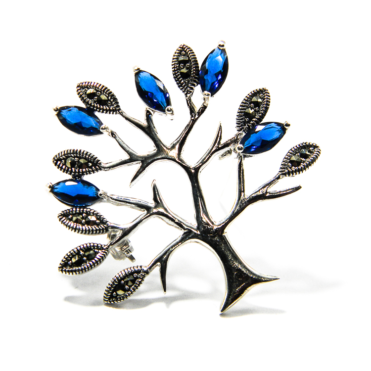 Brosa unicat din argint cu peridot si marcasite – Maya – BR110A2B
