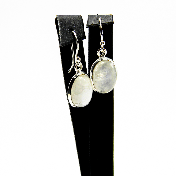 Cercei eleganti, in stil fashion, din argint 915 si piatra lunii, forma ovala.