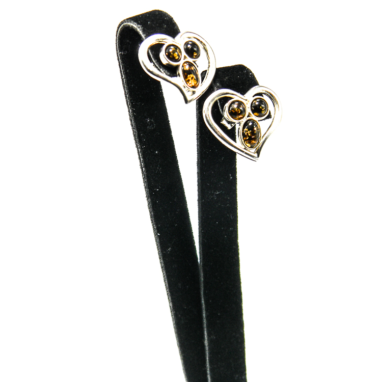 Cercei din argint cu chihlimbar verde – Inimioare – K120Y21D-2