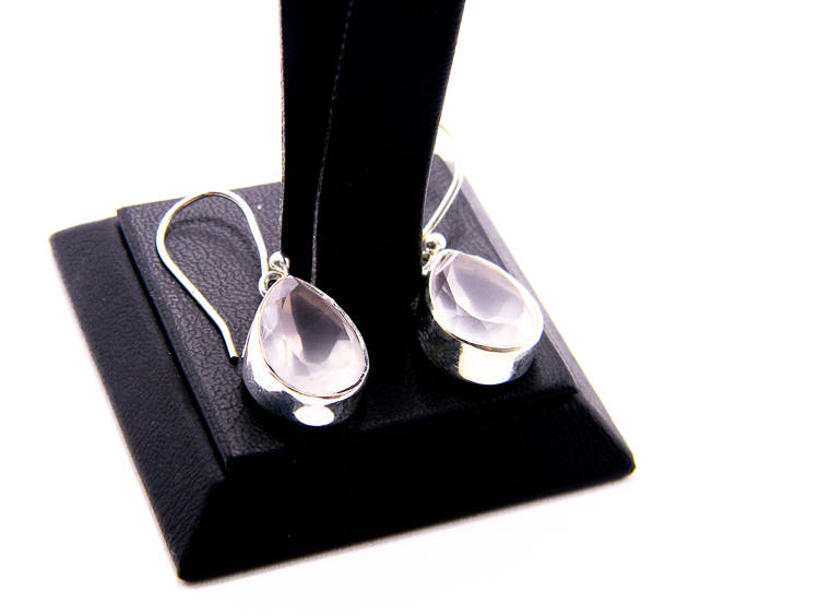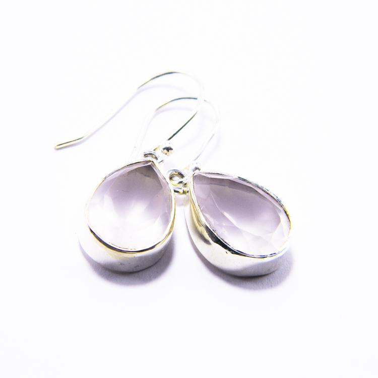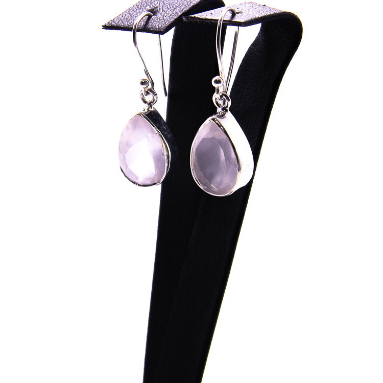 Cercei casual din argint 925 si pietre fatetate de cuart roz natural, in forma de lacrima.