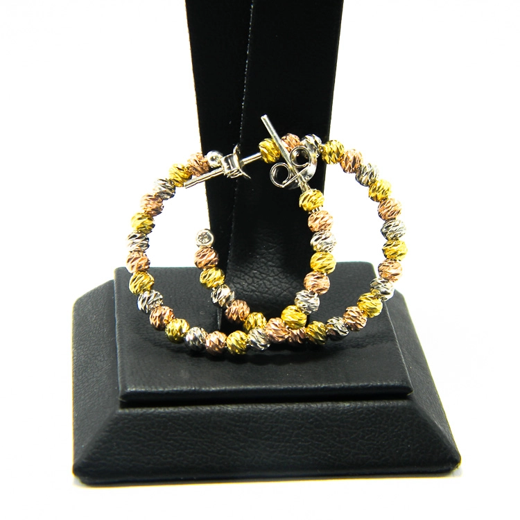 Cercei semirotunzi din argint cu argint aurit și argint rose, bijuteriie handmade realizată din bile mici, de 2 mm., dispuse pe tije arcuite din argint. O bijuterie fashion contempotană elegantă, ideală pentru ținute casual sau de ocazie.