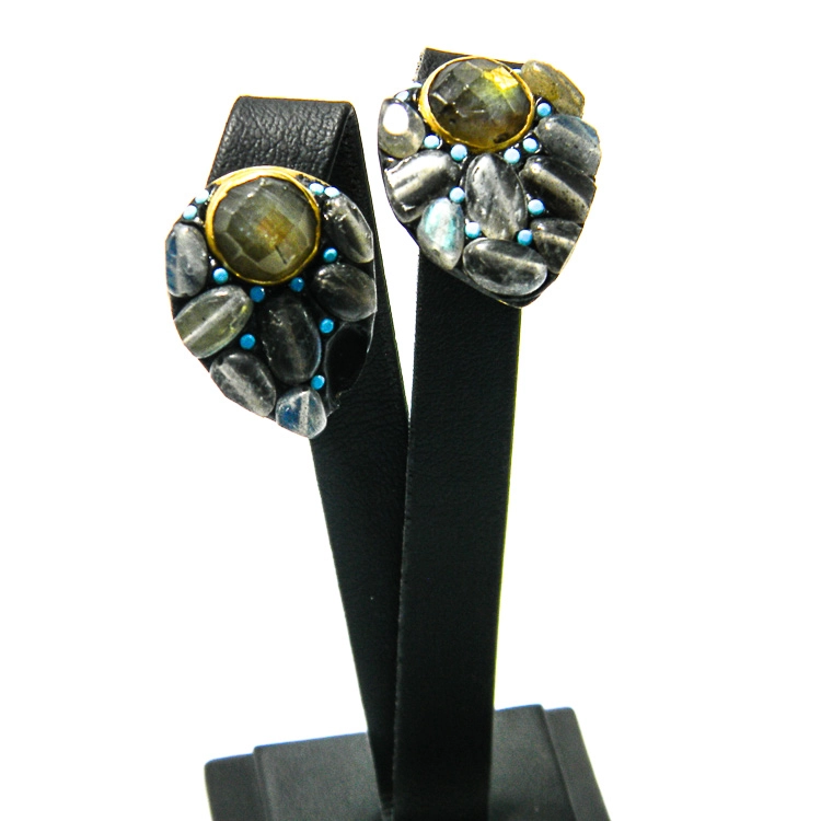 Cercei unicat din argint cu labradorit si turcoaz – k275f64h