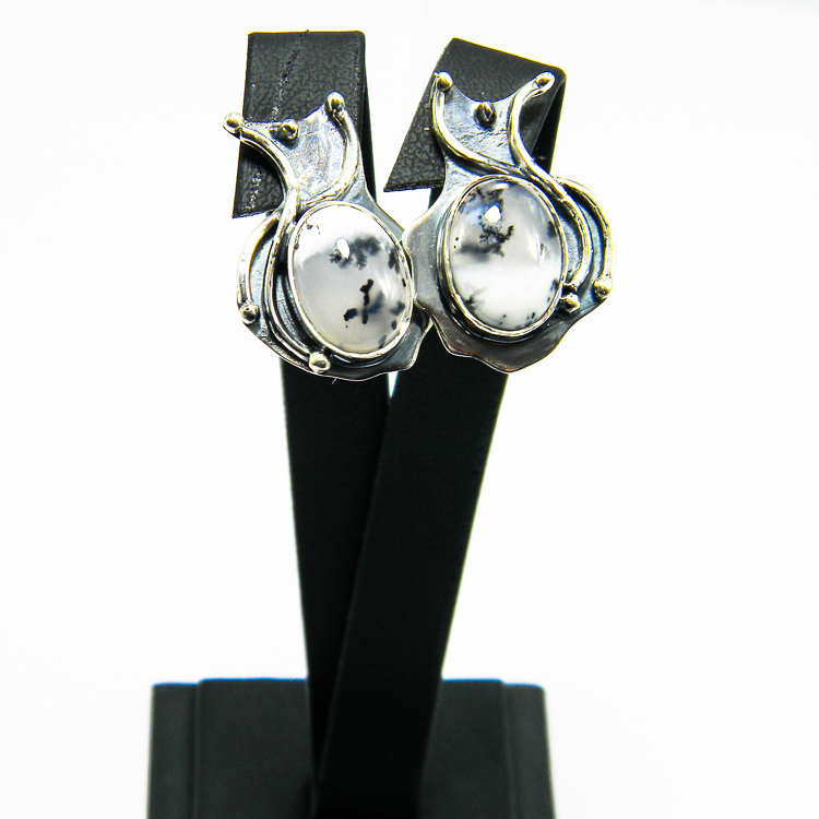 Bijuterii argint cu agat dendritic – Cercei unicat din argint 925 antichizat, decorati cu pietre naturale de agat dendritic.