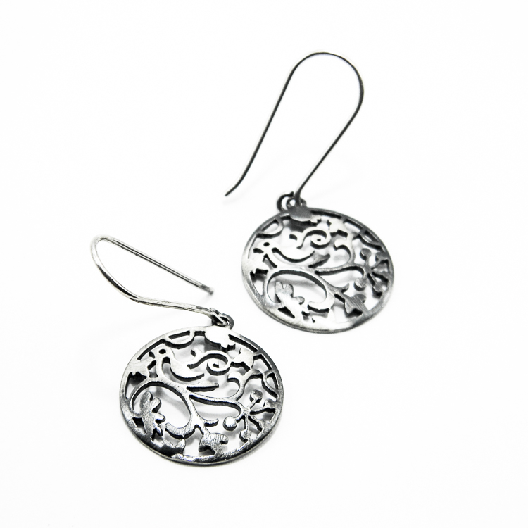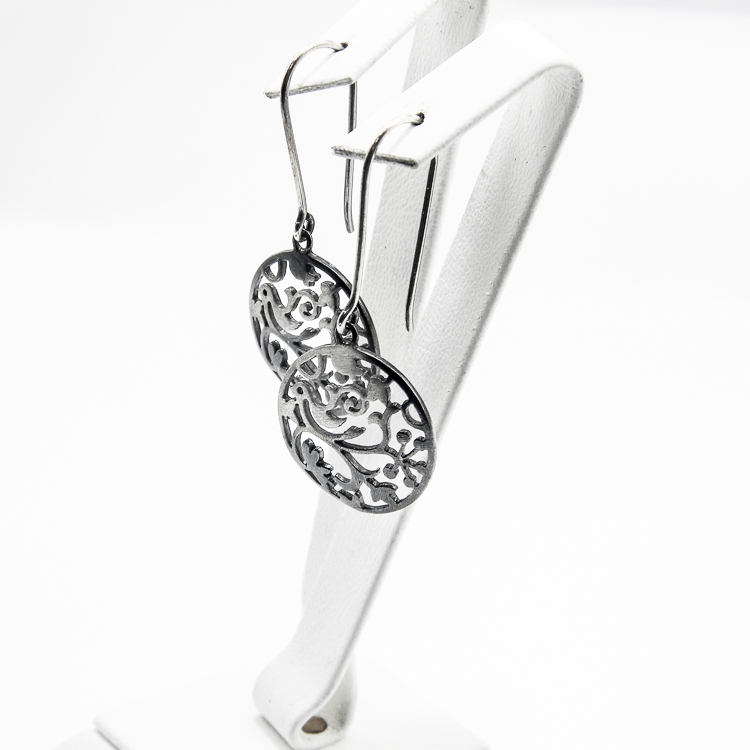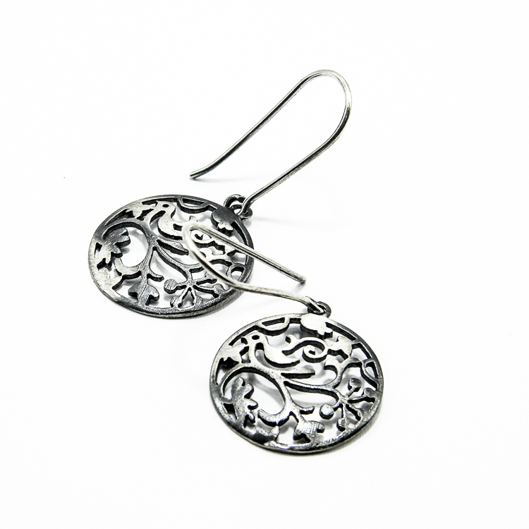 Cercei vintage din argint 925 patinat, realizati in stil Art Nouveau, in forma de pasari stilizate.