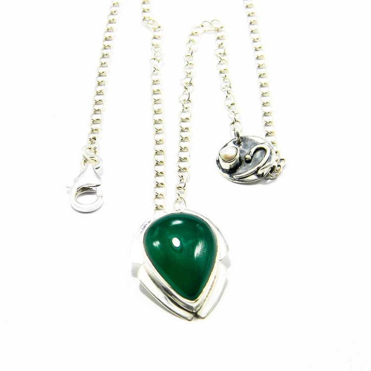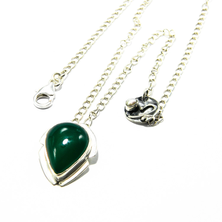 Colier din argint cu jad verde și perlă – Bijuterie statement contemporană