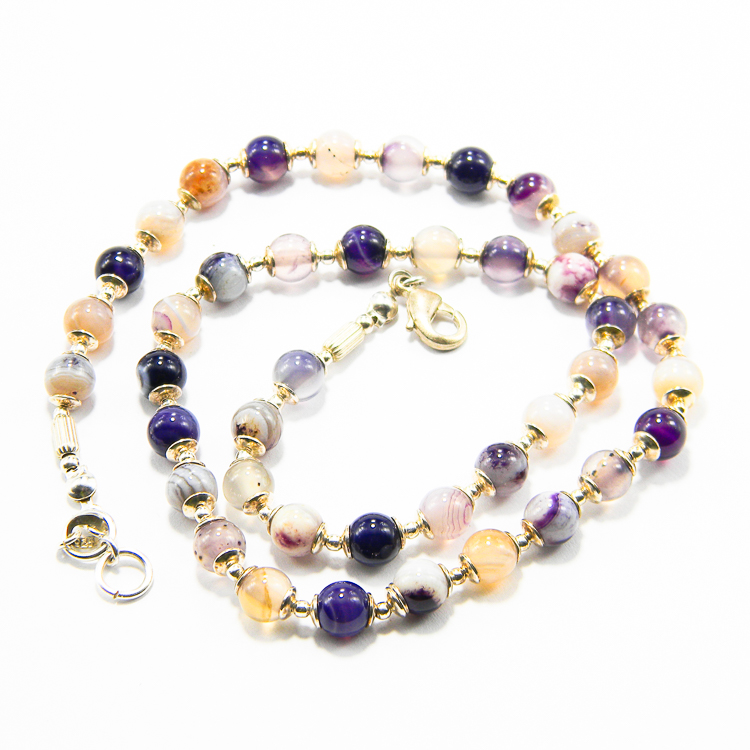 Colier unicat handmade din argint cu agate colorate,  realizat din componente de argint 925 (furnituri si inchizatoare) si pietre naturate de agate colorate – tonuri pastel.