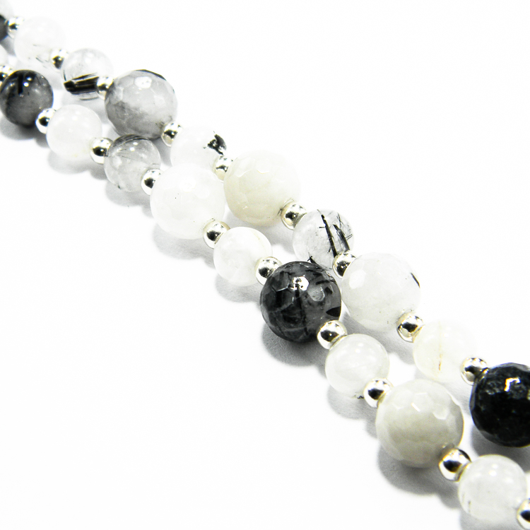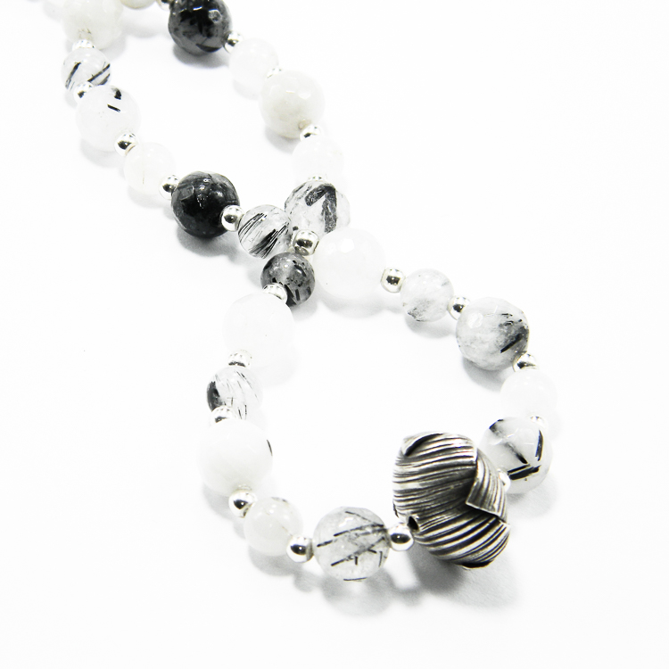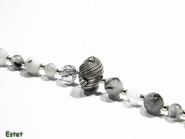 Colier handmade din pietre de agat dendritic si componente de argint 925 (bile mici, furnitur si inchizatori). La mijloc, are un elenent vintage din argint 925 antichizat, cu un diametru de 1.6 cm.