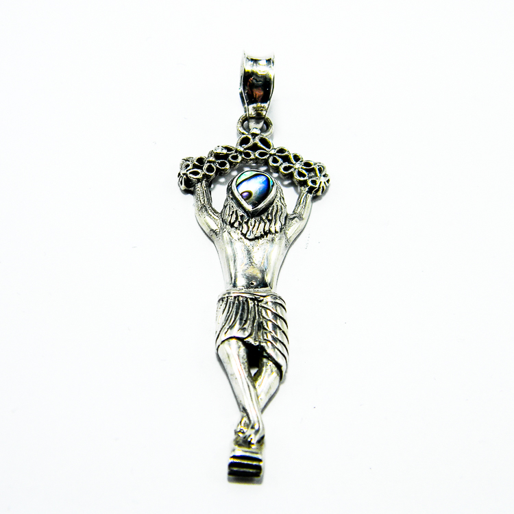 Cruciulita stilizata cu Iisus din argint si sidef Abalonne – P240Y96G