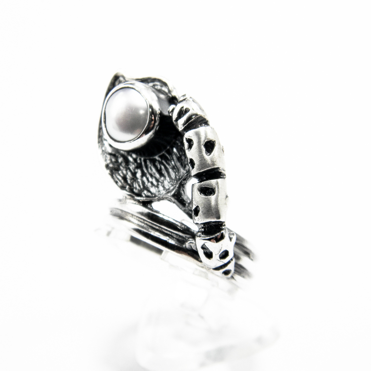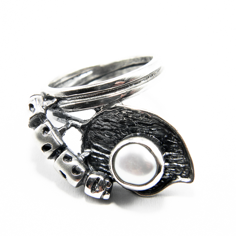 Inel unicat handmade din argint 925 antichizat, in stil vintage Art Deco, decorat cu perla Baroc de culoare alba.