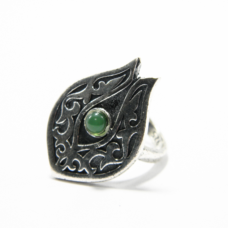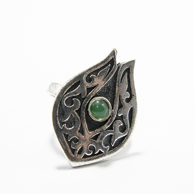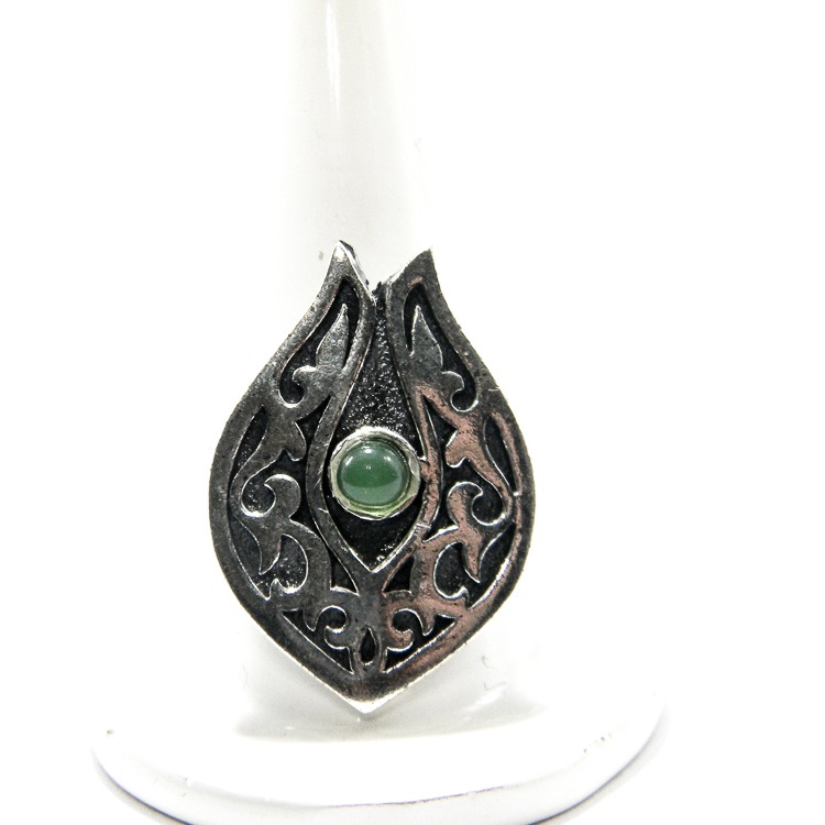 Inel din argint 925 patinat, realizat in stil vintage oriental, si decorat cu o mica piatra de aventurin.
