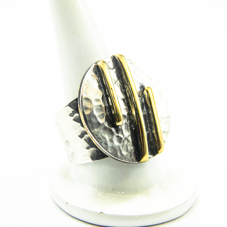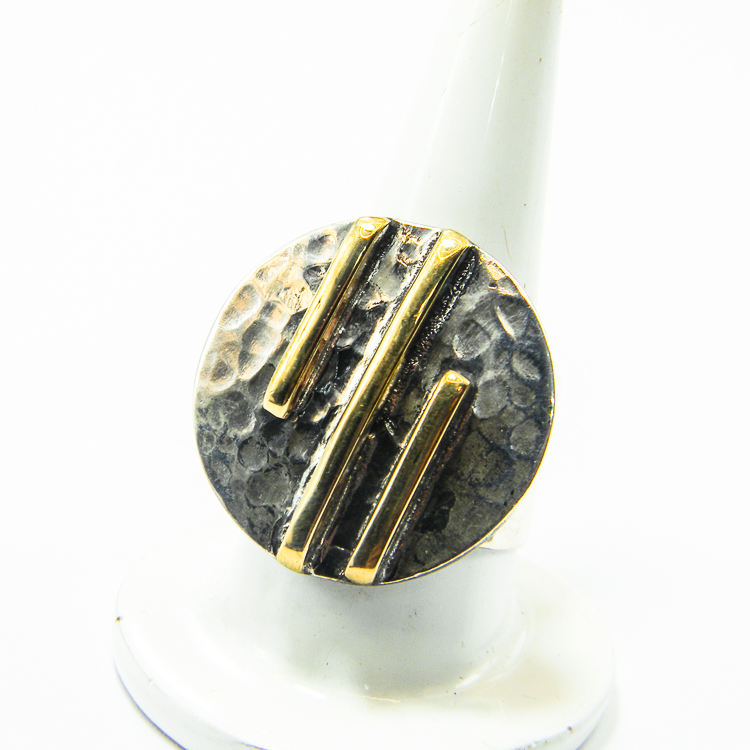 Inel reglabil din argint cu bronz – stil Vintage Art Deco – Unicat – i135E77G