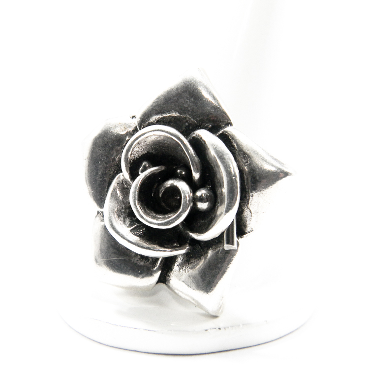 Bijuterii argint fara pietre – Inel din argint 925, stil Art Nouveau, puternic patinat ,in forma de floare.