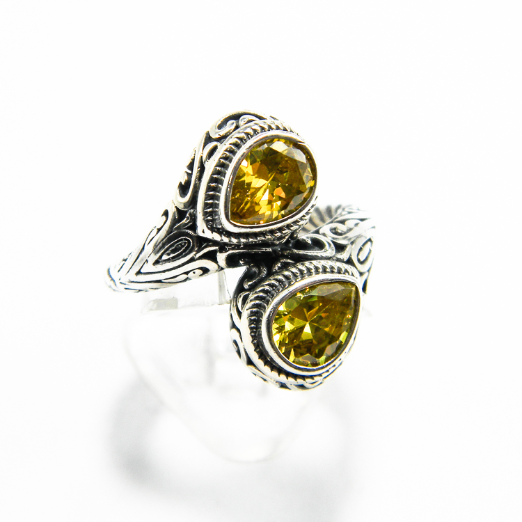 Inele argint in stil bizantin – Inel unicat din argint 925 patinat, decorat cu pietre fatetate de citrin in forma de lacrima.
