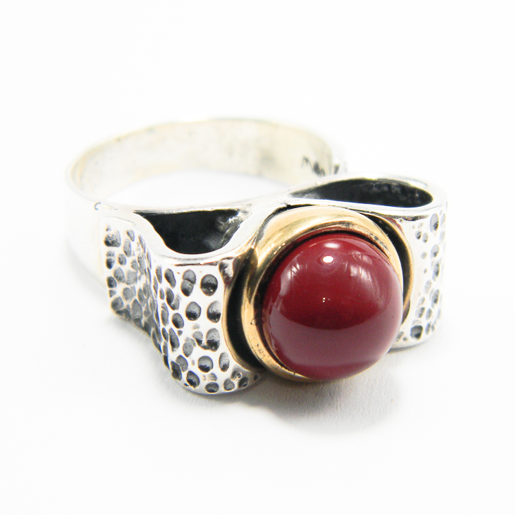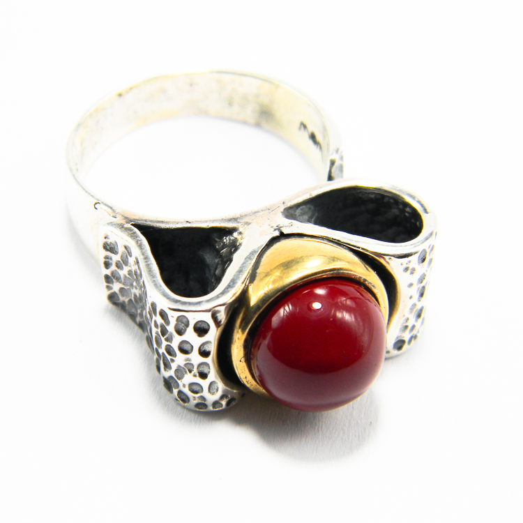 Inel mare, model unicat, din argint 925 antichizat, decorat cu perla de Mallorca de culoare rosie – stil vintage Art Deco.