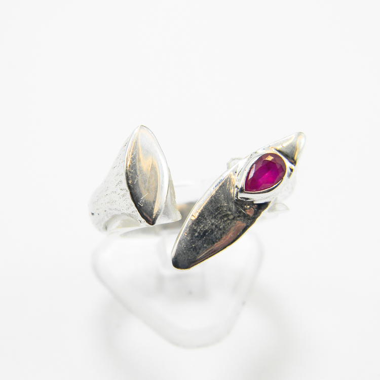 Inel unicat din argint 925, stil Art Deco, decorat cu piatra fatetata de rubin.