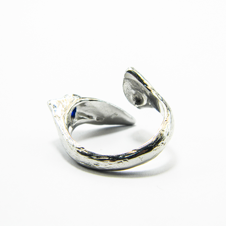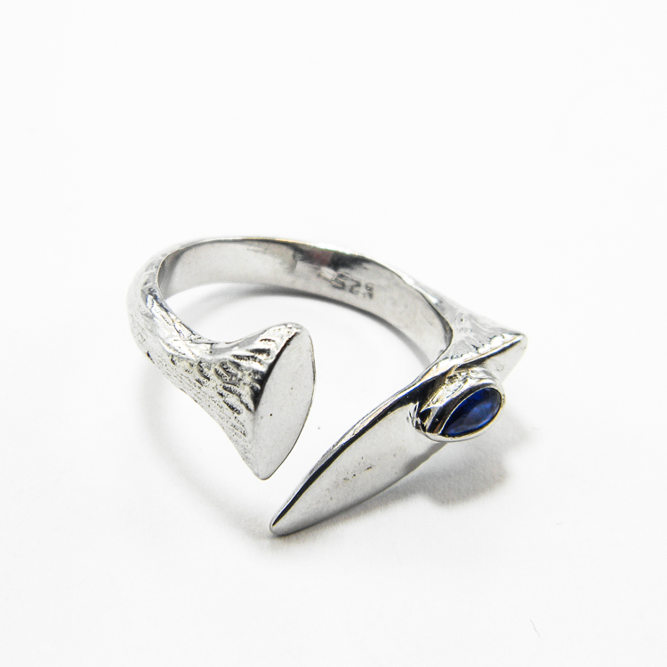 Inel unicat din argint 925, stil Art Deco, decorat cu piatra fatetata de safir albastru.