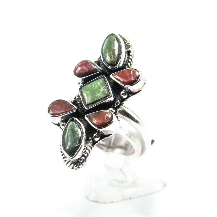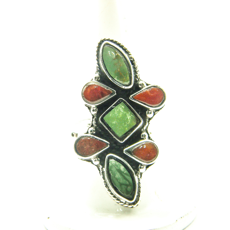 Inel unicat vintage din argint cu turcoaz verde si coral – stil bizantin – i240Y116G