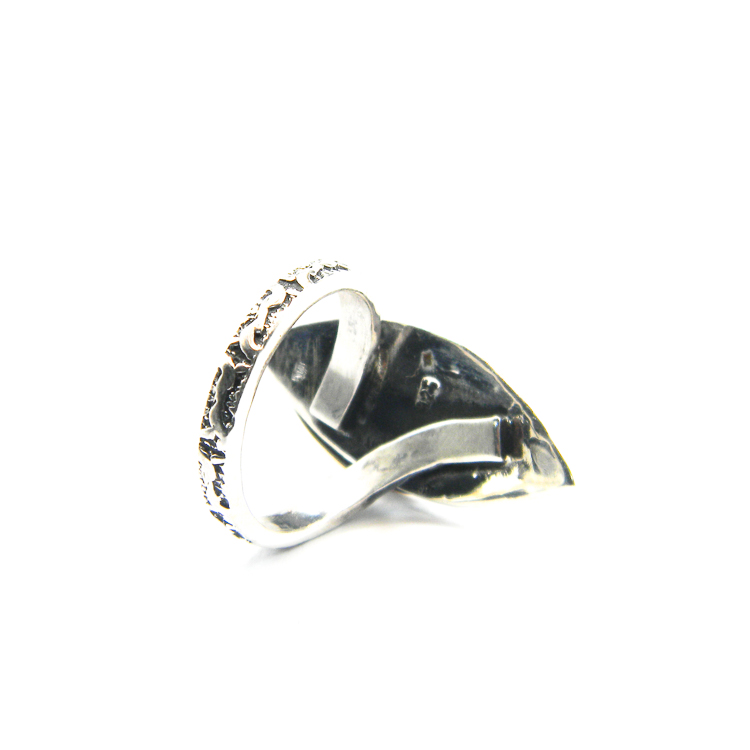 Inel vintage din argint 925 patinat, in stil Art Deco, decorat cu un segment de bronz, in forma de frunza.