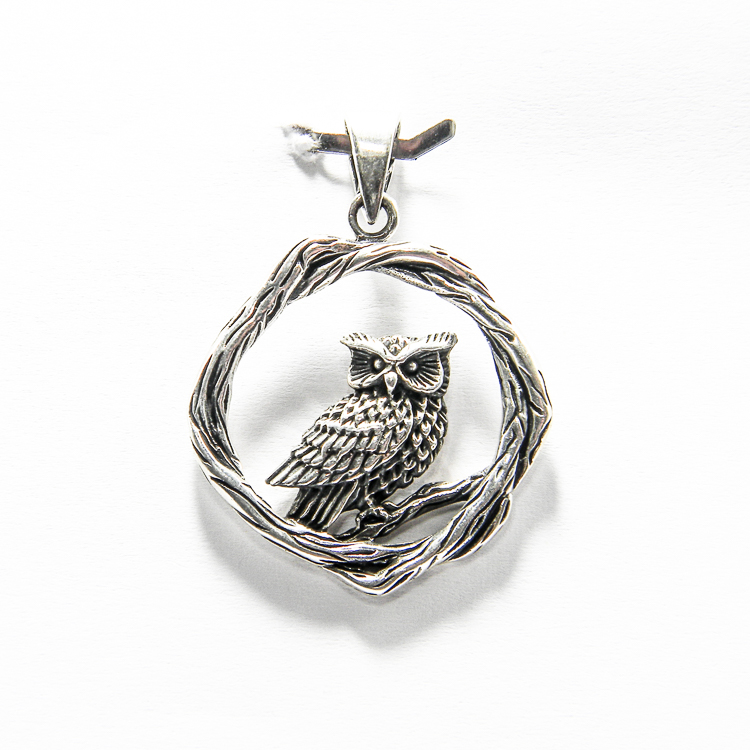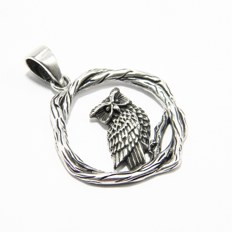Pandantiv din argint 925 antichizat, realizat in stil vintage, reprezentand o bufnita asezata pe ramura.