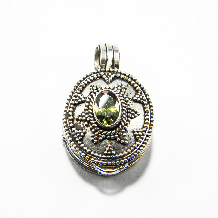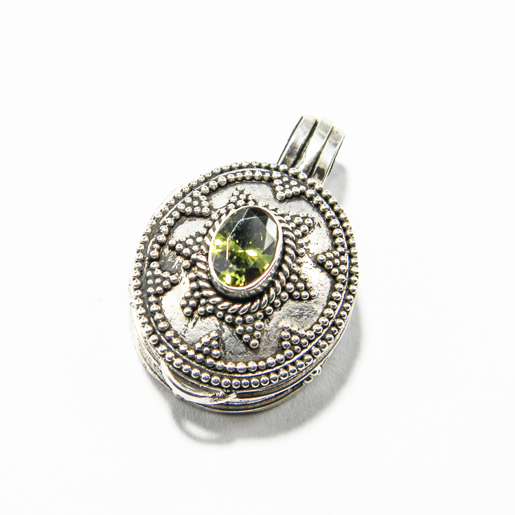 Pandantiv medalion vintage din argint cu olivina – Unicat – P160Y63B