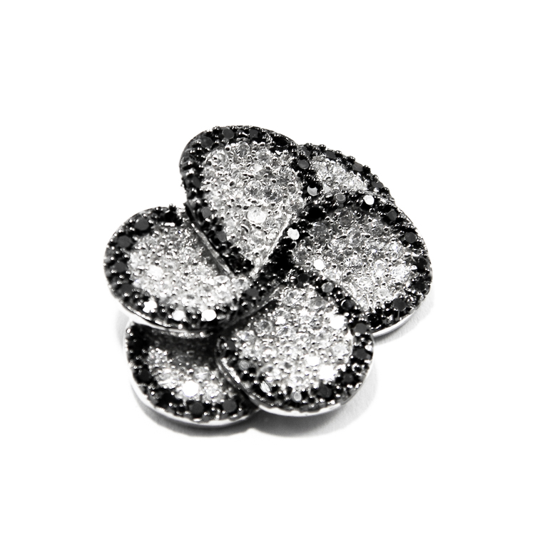 Este decorat cu pietre zirconiu negre si albe.