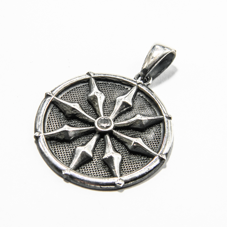 Pandantiv unisex din argint 925 antichizat, reprezentand Roza vanturilor.