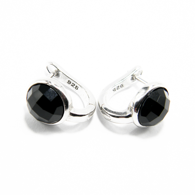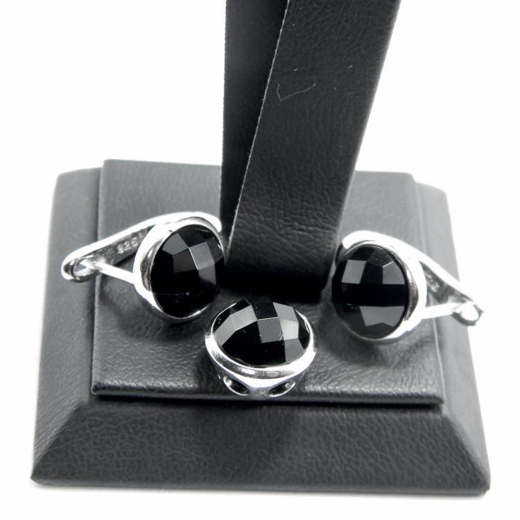 Set cu pietre de onix negru fatetat, montat in argint 925 – cercei si pandantiv – set argint stil fashion.