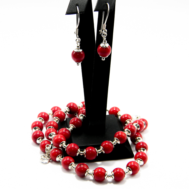 Set handmade din argint cu coral rosu – Unicat – Colier cu cercei – HM0502X