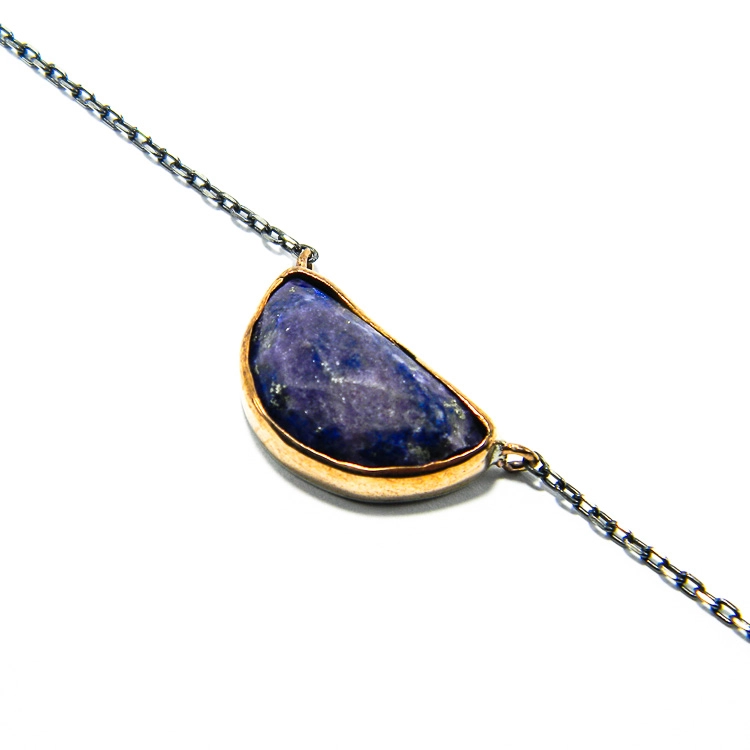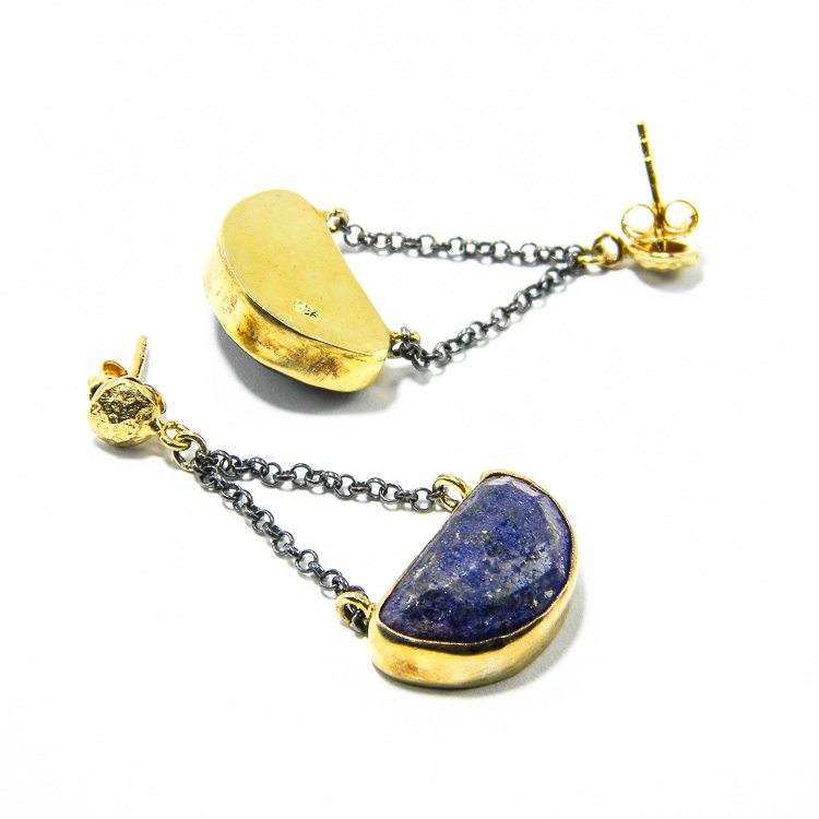 Este format din cercei si colier cu pandantiv, cu segmente de lant din argint antichizat si argint aurit. Piesele sunt decorate cu pietre naturale de lapis lazuli, usor slefuite.
