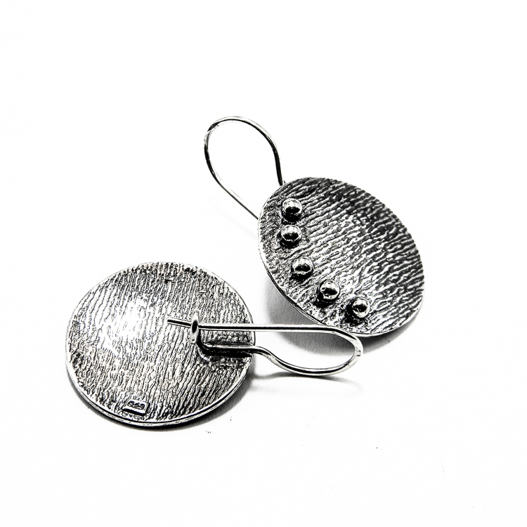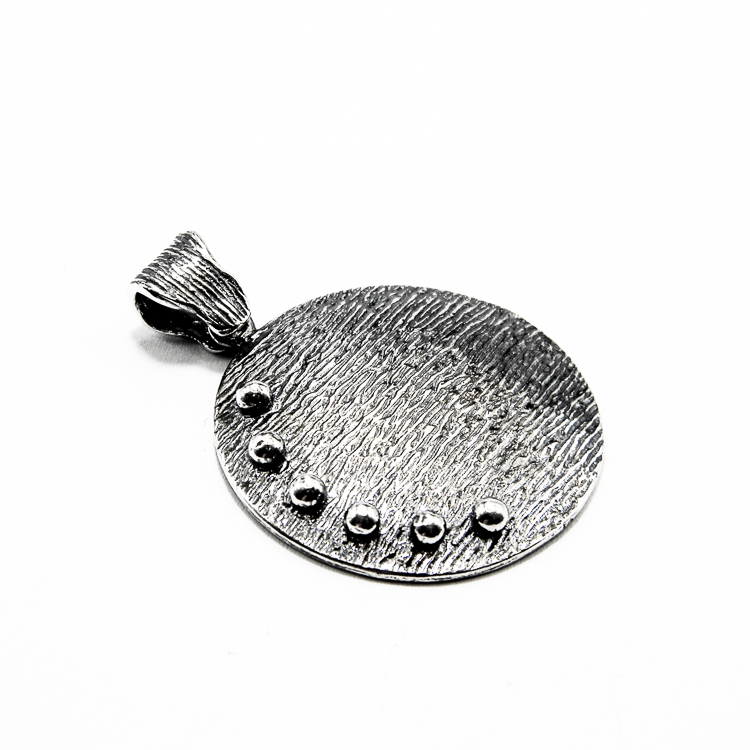 Detalii pandantiv: greutate – 7.58 grame; lungime – 3.8 cm.; latime (diametrul cerceului) – 2.8 cm.